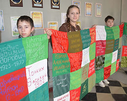 Организаторами акции уже собрано более 600 вышивок различных цветов. На данный момент платки сшиваются в единое полотнище, которое дети с гордостью понесут на митинге в день Победы. Мы помним и помнить будем!Сборы вышивок продолжается!